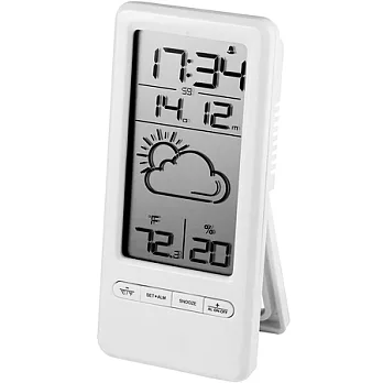 本商品一件入,適用 AAA 電池 x 2。生活作息都與時間息息相關,常需要透過時鐘獲知現在時刻,亦需要鬧鐘功能提醒自己不要錯過重要時程。推薦您此款小巧好攜帶的鬧時鐘,相當適合出國旅行或出差開會隨身使用;可顯示日曆及當前環境的溫度 (適用 0~45 度C) 及濕度 (適用20~95% 濕度 ) ,也可預測未來 6~12 小時內的天氣狀況 (可顯現晴天、晴時多雲、多雲或雨天四種圖示);鬧鐘附防貪睡功能,貼心提醒您不要賴床;符合歐盟 RoHs 產品綠色環保設計,以及歐盟 WEEE 環保回收的規範,讓您在使用產品的同時兼顧環保及使用安全。