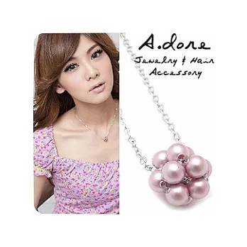 【A.dore】施華洛世奇水晶珍珠球球項鍊-薔薇粉紫