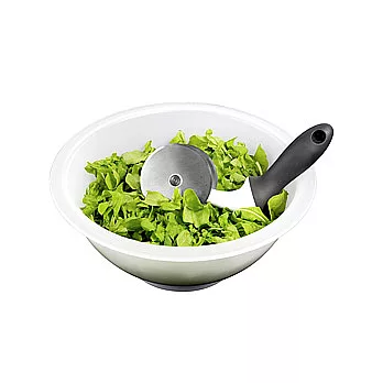 How 使用方式:本商品一組輪刀+沙拉碗各 1 件入。此款商品結合沙拉碗與沙拉輪刀,方便您快速處理新鮮沙拉料理,是生活中不可或缺的幫手。擁有兩片切刀的輪刀,讓您更快速切片菜葉、也避免過度破壞纖維。好拿握的止滑握把,即使手濕也可穩固施力;握把特殊的折凹設計,讓您在沙拉碗內也可快速切片而不會被沙拉碗卡住。約 5L 大容量沙拉碗,份量約6 人份。