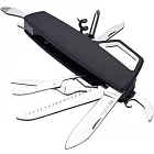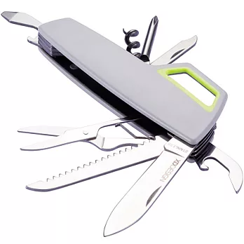 本商品一組含小刀與掛勾各 x 1;內含 10 種修繕功能,有小刀、鋸齒刀、剪刀、一字起 x 2、十字起、軟木螺旋鑽刀、開瓶器、開罐器、指甲銼刀。多功能、方便且耐用的工具組有廣泛的用途,如登山健走、踏青旅行等運動,亦或日常修理自行車、汽車、電腦等,都是不可或缺的實用好幫手;可拆卸式掛勾,方便固定於包袋上攜帶。
